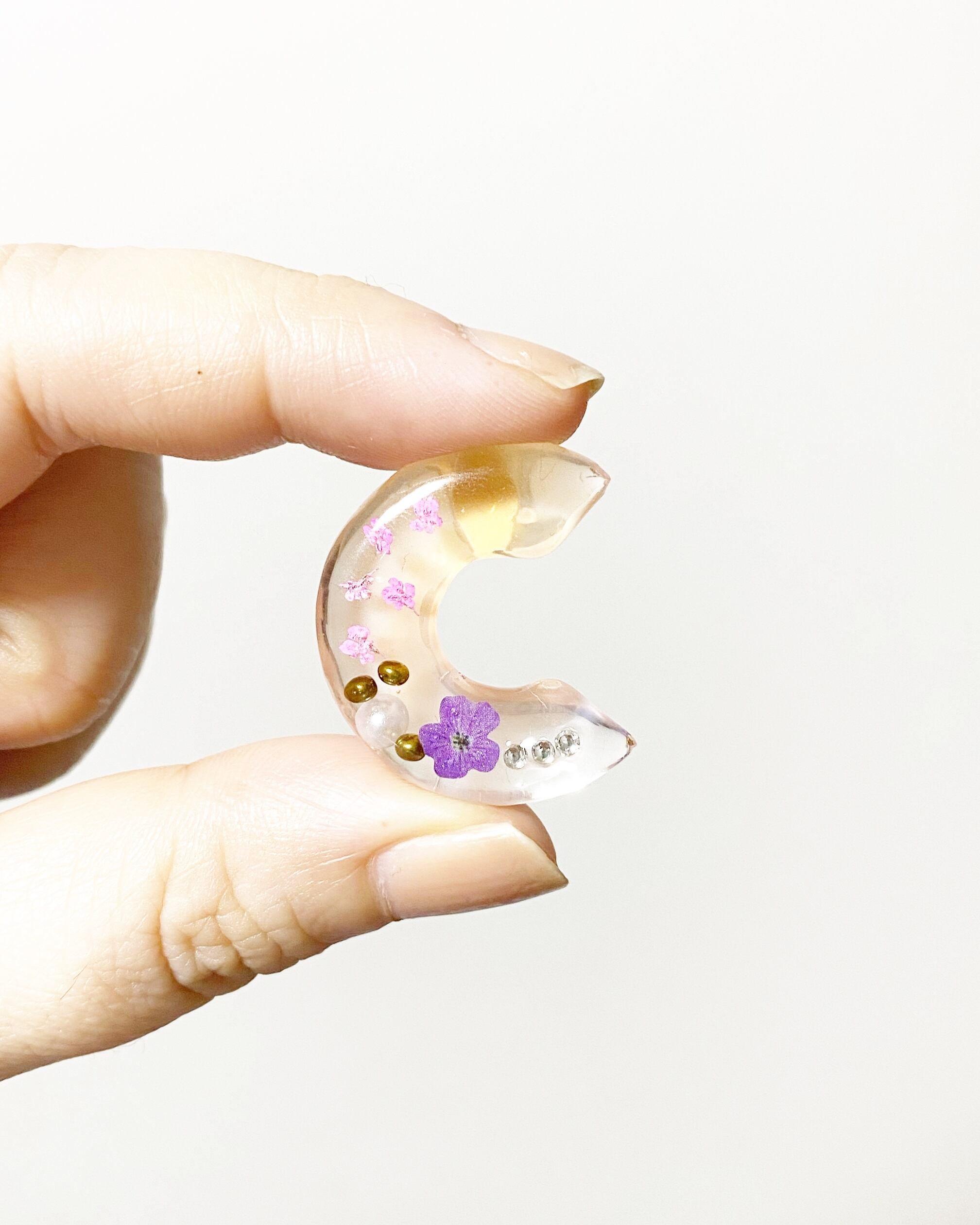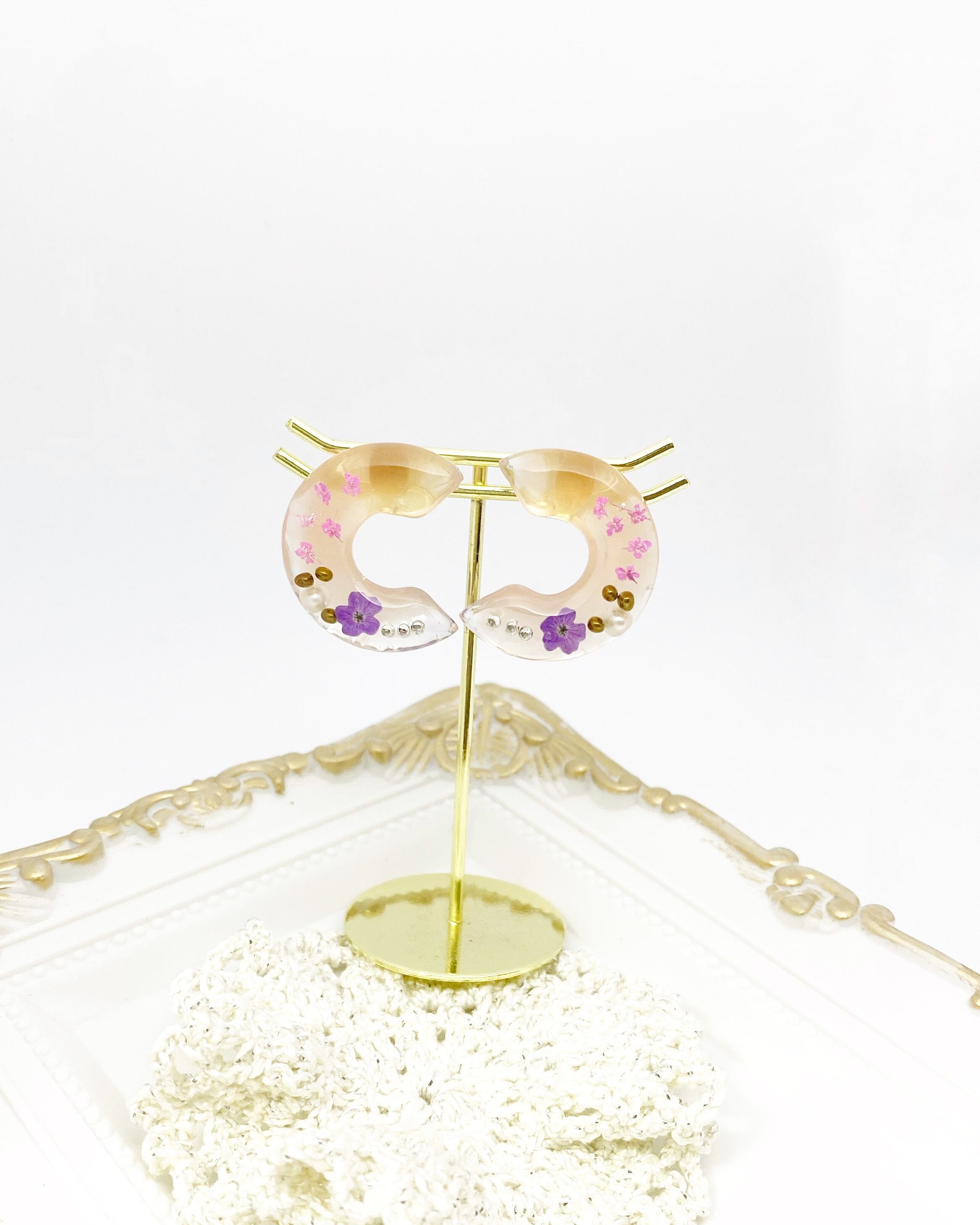 オレンジ系のグラデーションカラーにラインストーンがキラリと輝くC型ピアスです✧︎
