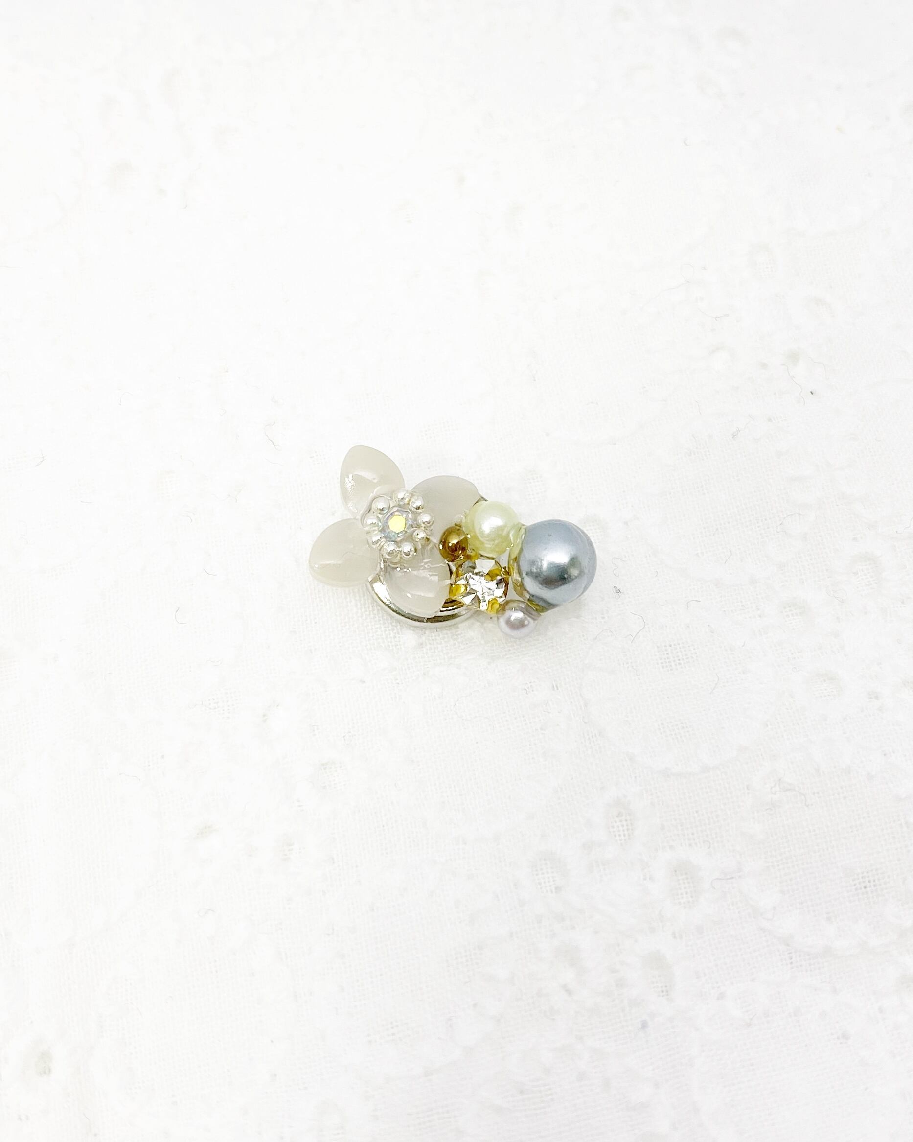 パステルグレーの小花モチーフ、カラーパール、ビジューなどを組み合わせ、レジンで仕上げております。