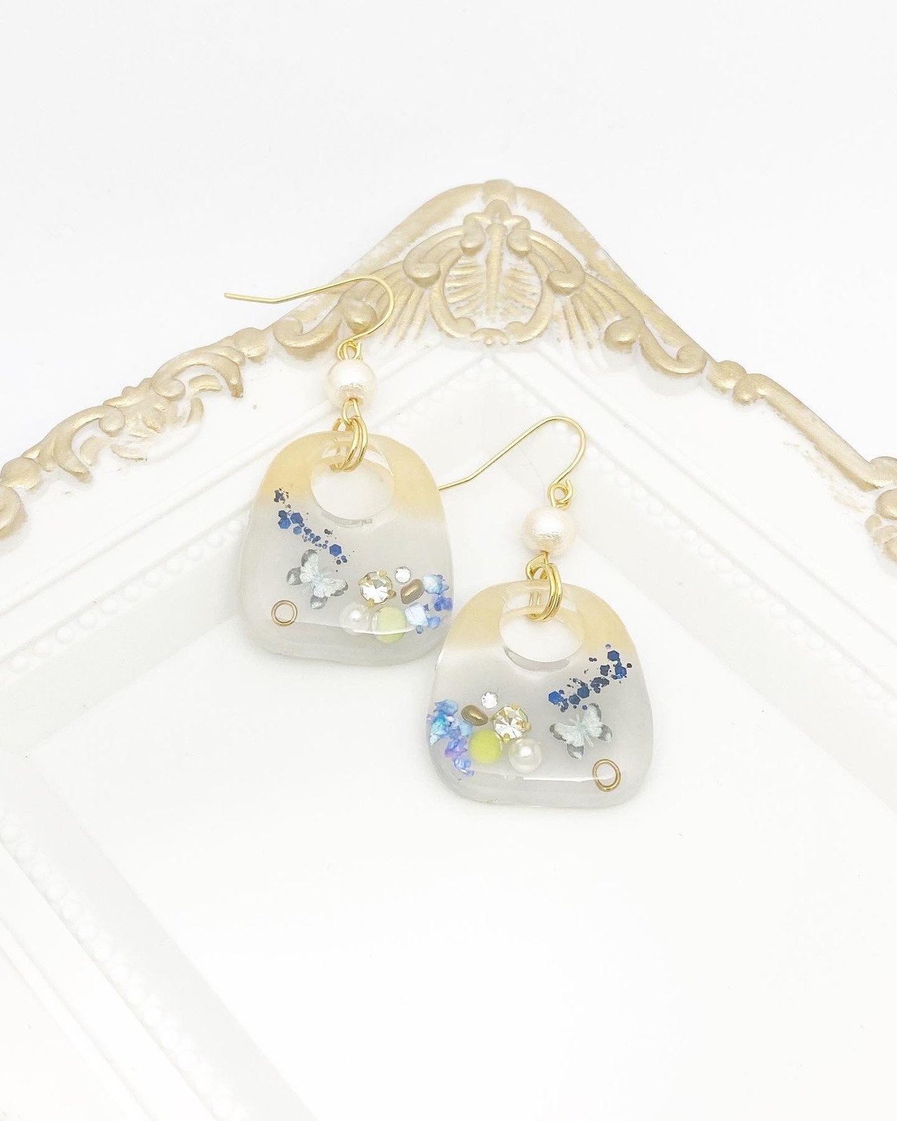 ペーパーフレークの蝶やビジューを封入し、