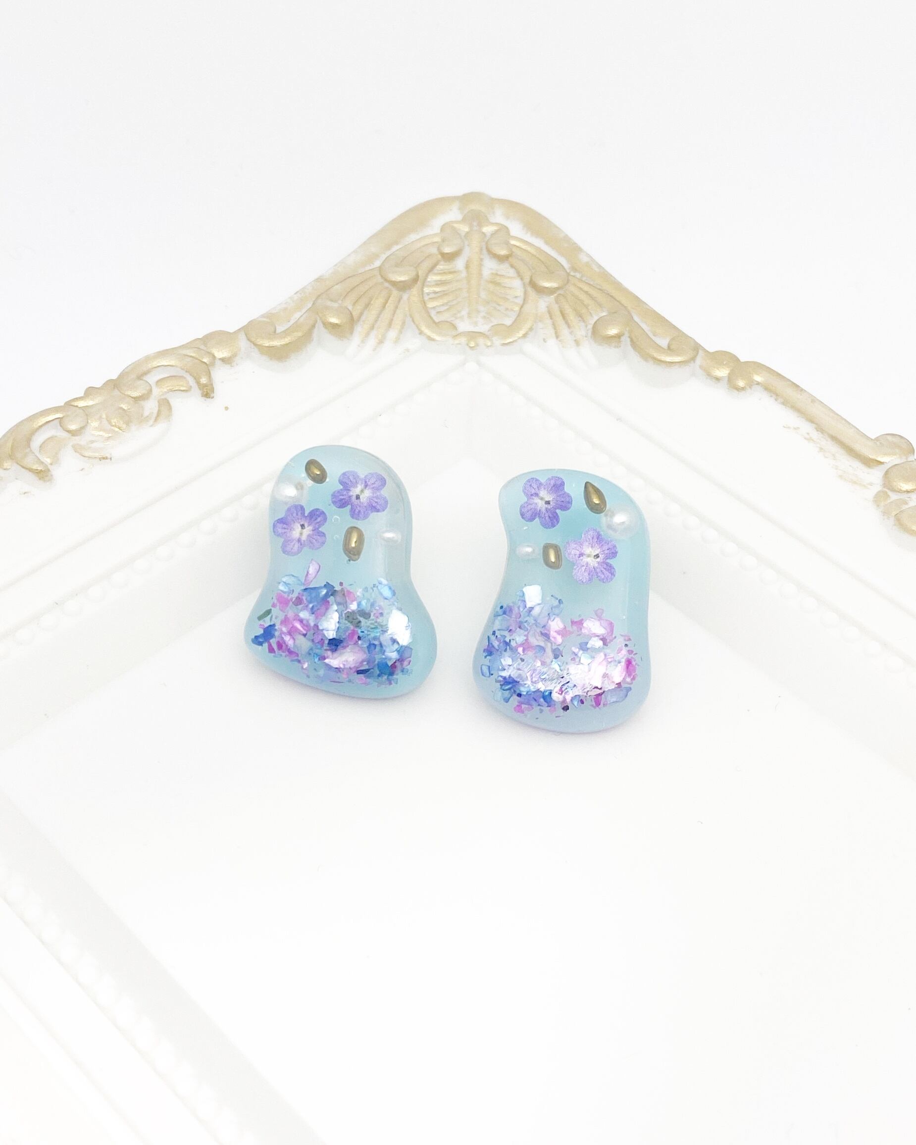 勿忘草のフレークフラワーを封入した可愛らしいデザイン。