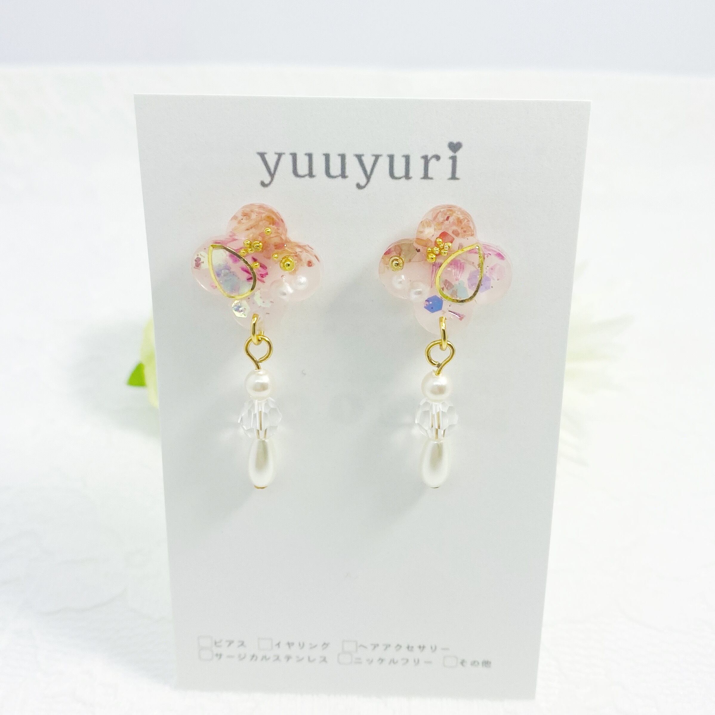 そんな四つ葉のクローバーをモチーフにした、パールが揺れるクローバーピアスです。