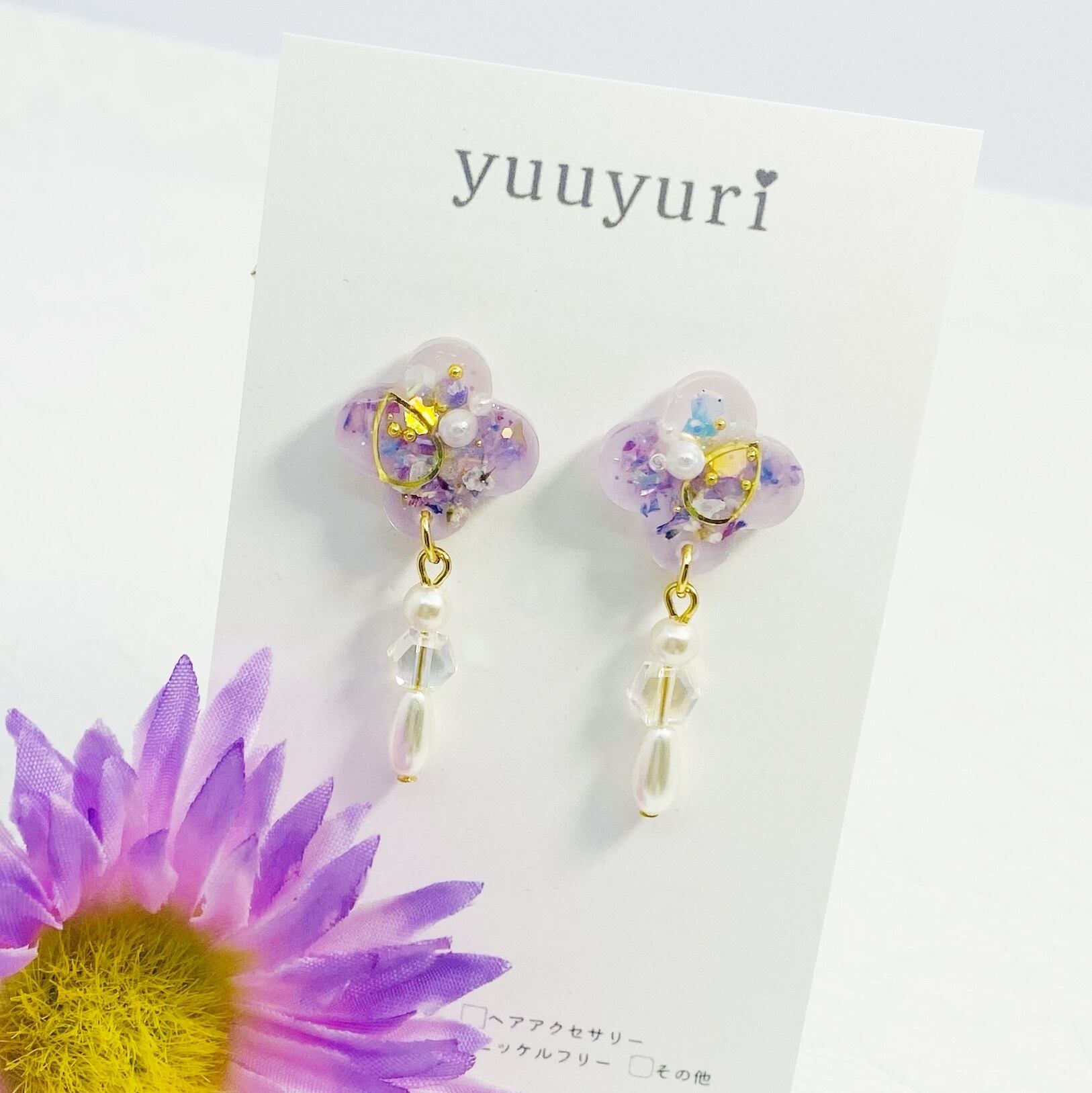 そんな四つ葉のクローバーをモチーフにした、パールが揺れるクローバーピアスです。